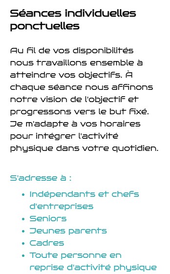 mais surtout au profit de mes clients pour qui je développe une approche individualisée dans mon studio de coaching privé à Chastre (Brabant Wallon).